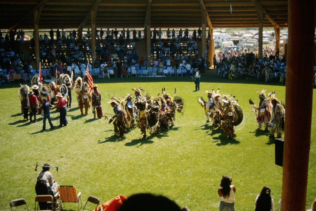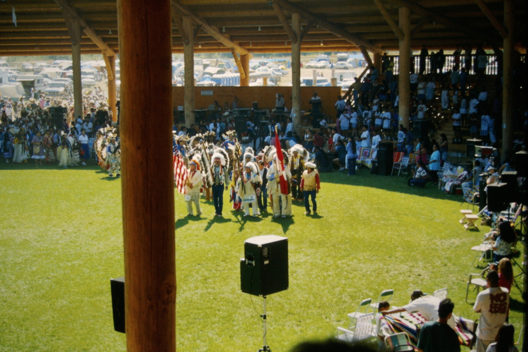 Ein Pow-wow kann einen oder mehrere Tage dauern, meist im Freien, umgeben von Zelten, Verkaufsständen und Trommelgruppen.