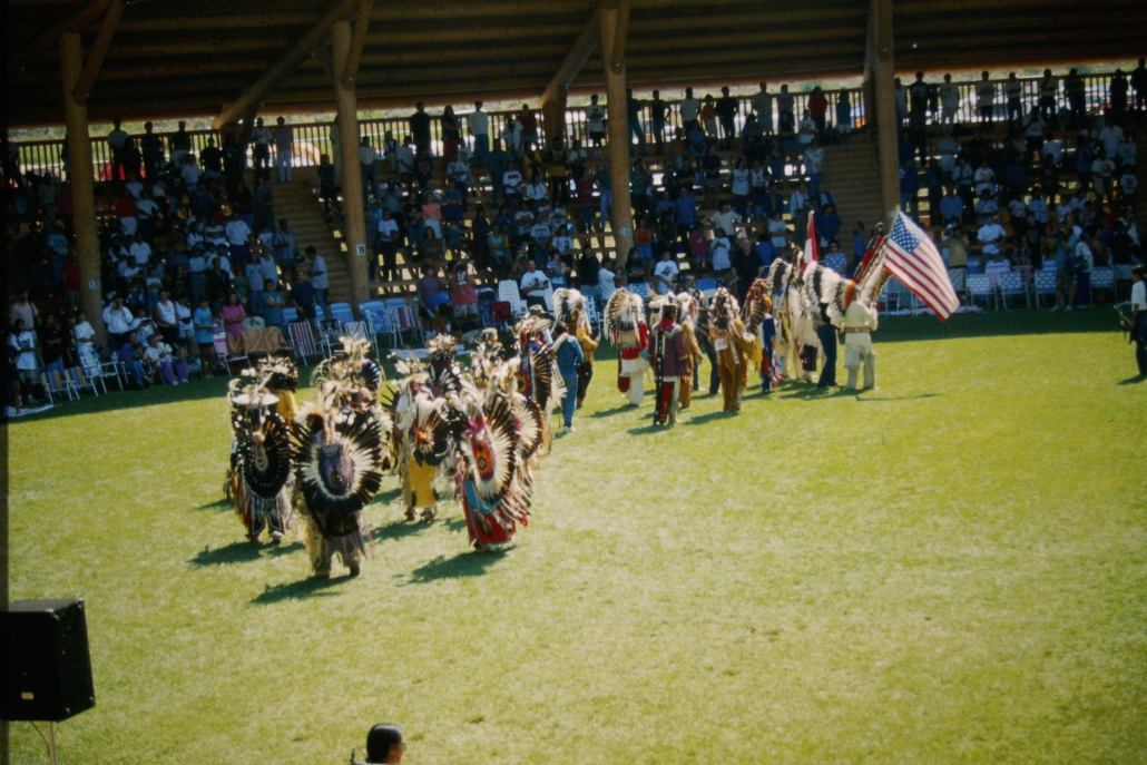 Das Herzstück jedes Pow-wows ist der feierliche Einzug, bei dem alle Tänzer, Trommler und Ältesten unter Gesang und Trommelschlag in den Kreis ziehen.